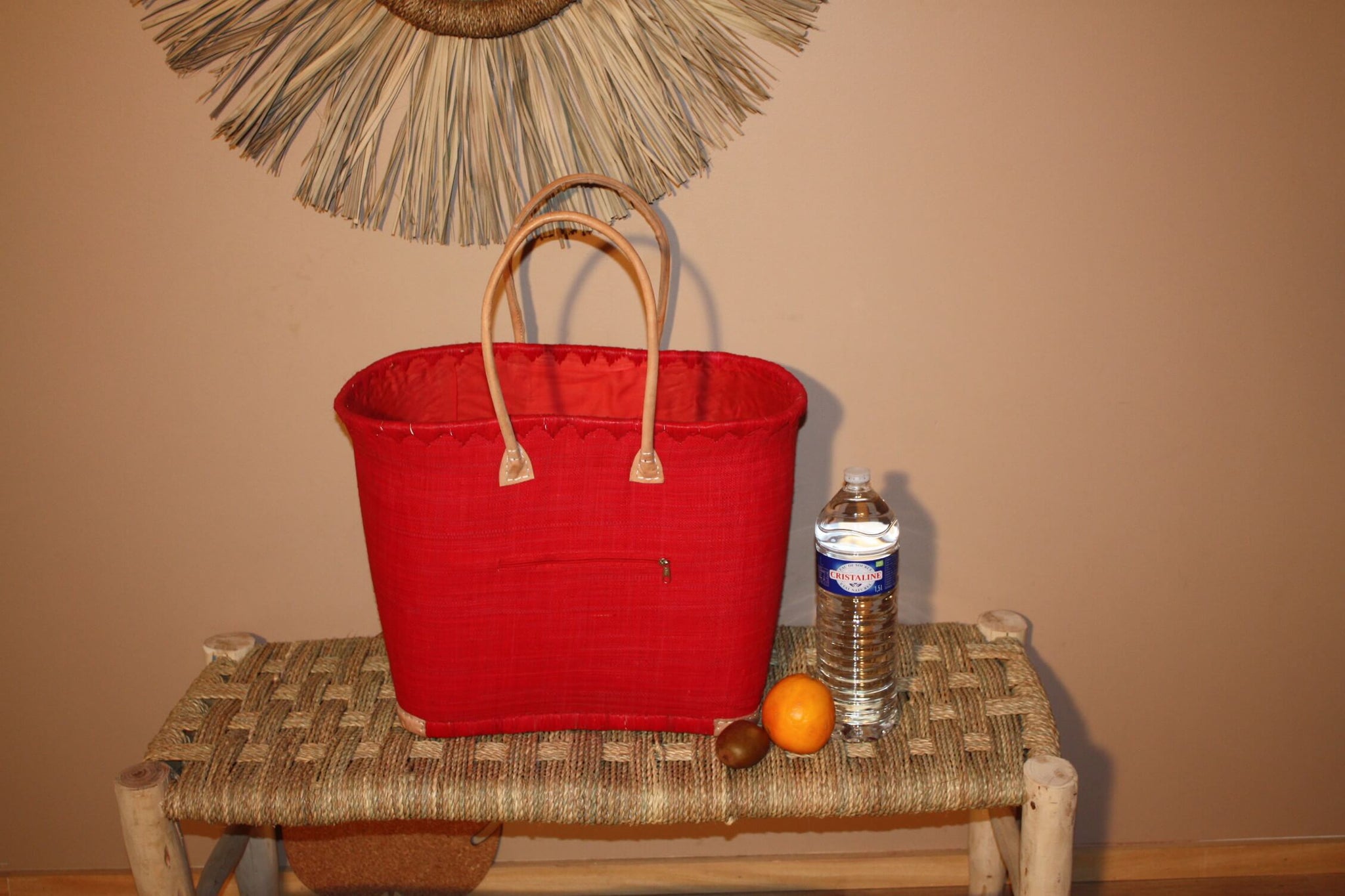 Panier Doublure Rabane Rouge + Poche zippée - Sac Cabas Anses Longues - 3 TAILLES - Marchés, courses, plage...