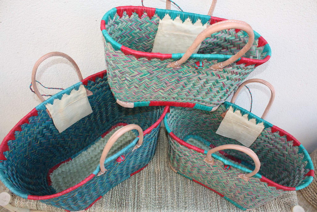 Cabas à courses de Madagascar - Panier Turquoise & Rouge - Sac tressé Artisanal - 3 tailles au choix -