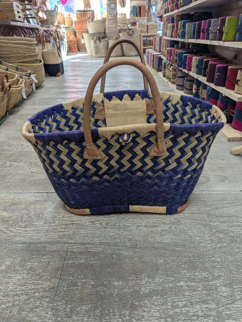 Panier à courses - ARTISANAL MADAGASCAR - Sac Cabas Naturel et Bleu - Tressé à la main - 3 tailles au choix - osier marché plage