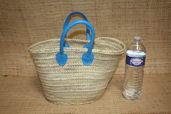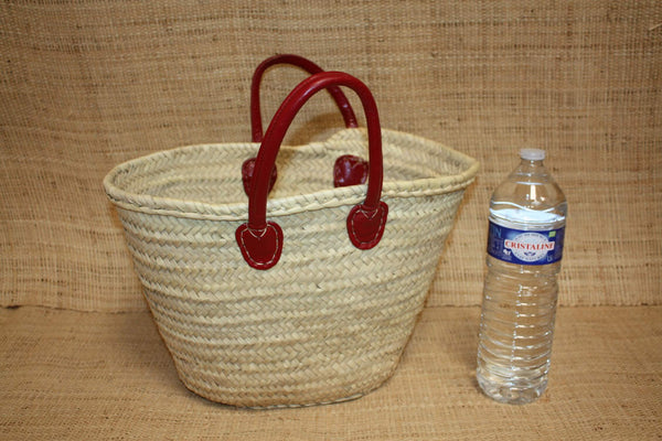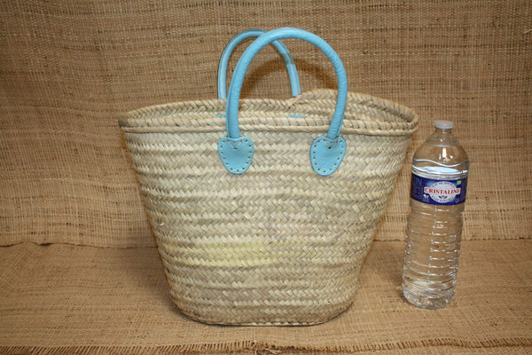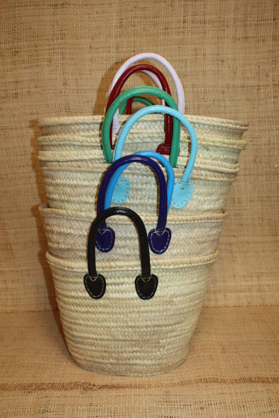 Panier en Rotin pour Courses | Sac en Paille de Plage | Cabas en Osier pour le Marché - Anses Rondes en Cuir : Plusieurs Couleurs Au Choix