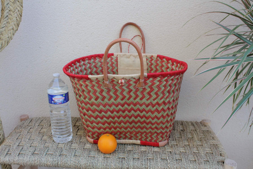 Beau panier à courses - Cabas ARTISANAL MADAGASCAR - Sac Rouge & Naturel - Tressé Main - 3 tailles au choix - plage osier paille
