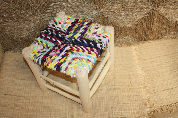 Tabouret Marocain artisanat Boucherouite.