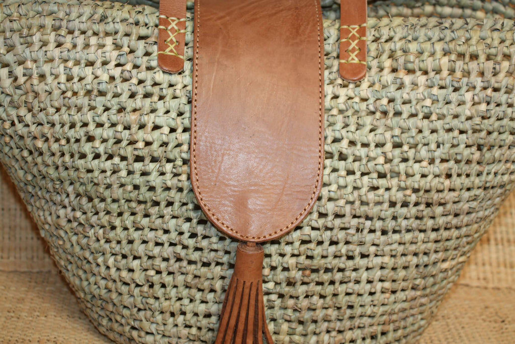 Panier avec Rabat + Anses Longues Cuir Naturel - Sac Paille Plage été Cabas marchés courses