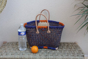 Cabas à courses de Madagascar - Panier Bleu & Orange - Sac tressé Artisanal - 3 tailles au choix -